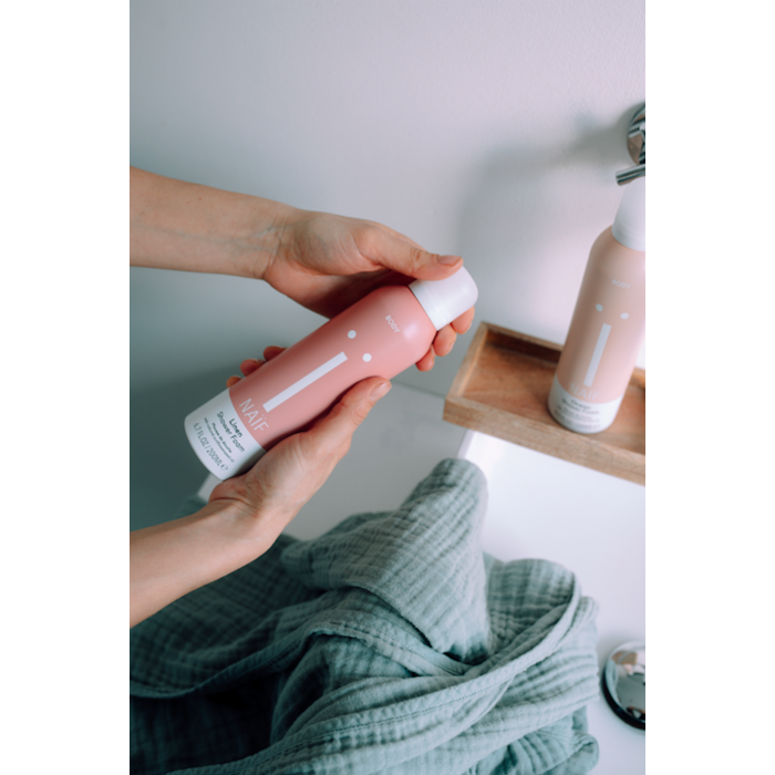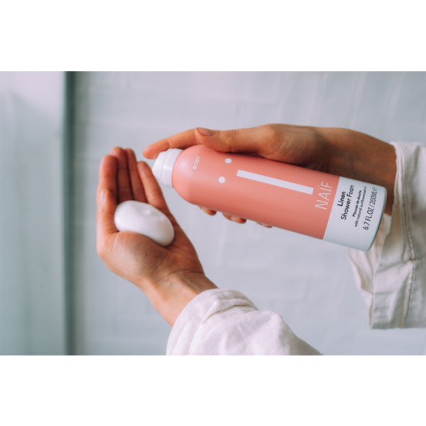 Is showering your moment to relax? Create your own mini-spa with Naïf Linen Shower Foam, with the warm scent of bergamot and lavender. You’ll relax for sure. This foaming shower gel cleanses and moisturizes the skin with natural ingredients. And of course without hard foaming agents, such as SLS/SLES, which can dry out the skin. Instead, this foaming shower mousse contains a mild variant, made of coconut fibers.
